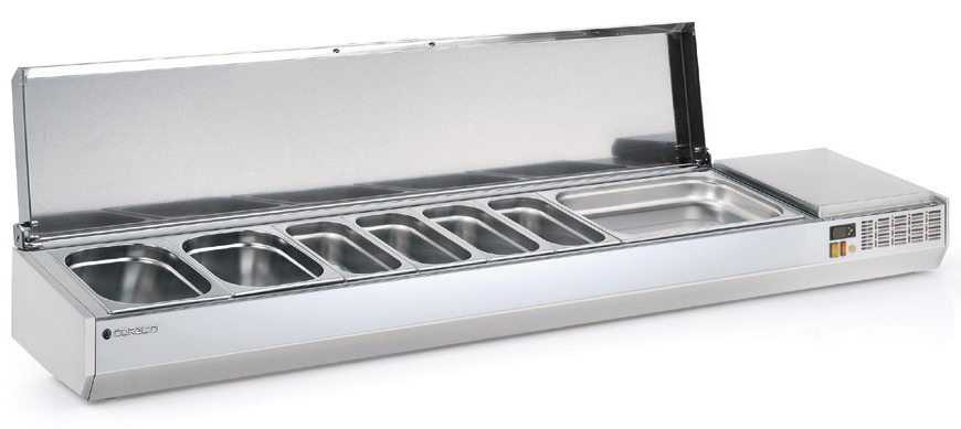 Холодильная витрина для ингредиентов Coreco EI250T предназначена для кратковременного хранения ингредиентов при приготовлении пиццы и салатов, а так же демонстрации и продажи предварительно охлажденных пищевых продуктов в гастрономических ёмкостях на предприятиях торговли и общественного питания.