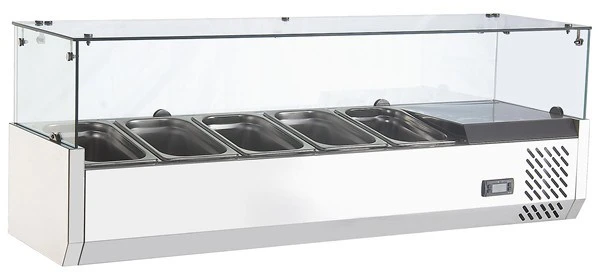 Холодильная витрина для ингредиентов Enigma RT-1200L со стеклянной крышкой предназначена для кратковременного хранения ингредиентов при приготовлении пиццы и салатов, а так же демонстрации и продажи предварительно охлажденных пищевых продуктов в гастрономических ёмкостях на предприятиях торговли и общественного питания.