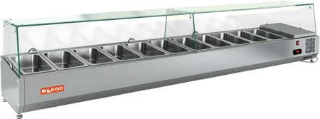 Холодильная витрина для ингредиентов Hicold VRTG 2280 предназначена для кратковременного хранения ингредиентов при приготовлении пиццы и салатов, а так же демонстрации и продажи предварительно охлажденных пищевых продуктов в гастрономических ёмкостях на предприятиях торговли и общественного питания.