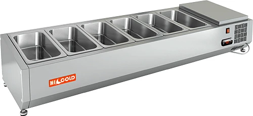 Холодильная витрина для ингредиентов HicoldD VRTO 1390 предназначена для кратковременного хранения ингредиентов при приготовлении пиццы и салатов, а так же демонстрации и продажи предварительно охлажденных пищевых продуктов в гастрономических ёмкостях на предприятиях торговли и общественного питания.