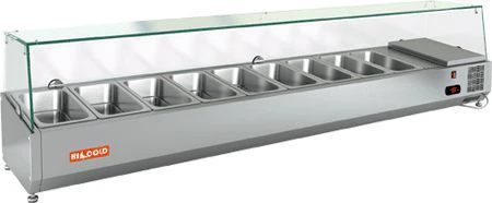 Холодильная витрина для ингредиентов Hicold VRX 2000 предназначена для кратковременного хранения ингредиентов при приготовлении пиццы и салатов, а так же демонстрации и продажи предварительно охлажденных пищевых продуктов в гастрономических ёмкостях на предприятиях торговли и общественного питания.