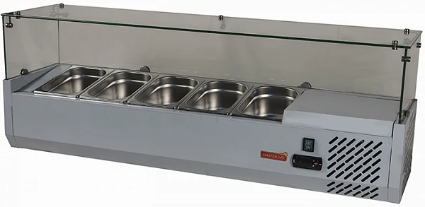 Под рукой повара, в небольших гастроемкостях, могут в оптимальных условиях могут храниться топпинги и компоненты для пиццы.