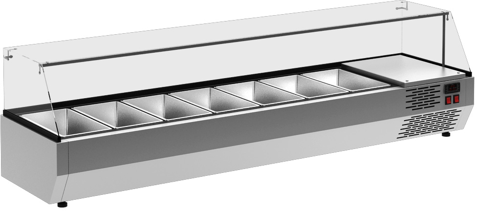 Холодильная витрина для ингредиентов Полюс A30 SM 1,3-G 0430 предназначена для кратковременного хранения ингредиентов при приготовлении пиццы и салатов, а так же демонстрации и продажи предварительно охлажденных пищевых продуктов в гастрономических ёмкостях на предприятиях торговли и общественного питания.