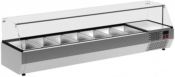 Холодильная витрина для ингредиентов Полюс A40 SM 1,3-G 0430 предназначена для кратковременного хранения ингредиентов при приготовлении пиццы и салатов, а так же демонстрации и продажи предварительно охлажденных пищевых продуктов в гастрономических ёмкостях на предприятиях торговли и общественного питания.