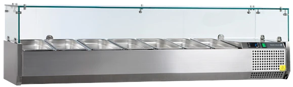 Холодильная витрина для ингредиентов Tefcold VK33-160 предназначена для кратковременного хранения ингредиентов при приготовлении пиццы и салатов, а так же демонстрации и продажи предварительно охлажденных пищевых продуктов в гастрономических ёмкостях на предприятиях торговли и общественного питания.