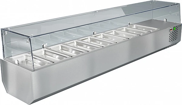 Холодильная витрина для ингредиентов Техно-ТТ МВО-130 предназначена для кратковременного хранения ингредиентов при приготовлении пиццы и салатов, а так же демонстрации и продажи предварительно охлажденных пищевых продуктов в гастрономических ёмкостях на предприятиях торговли и общественного питания.