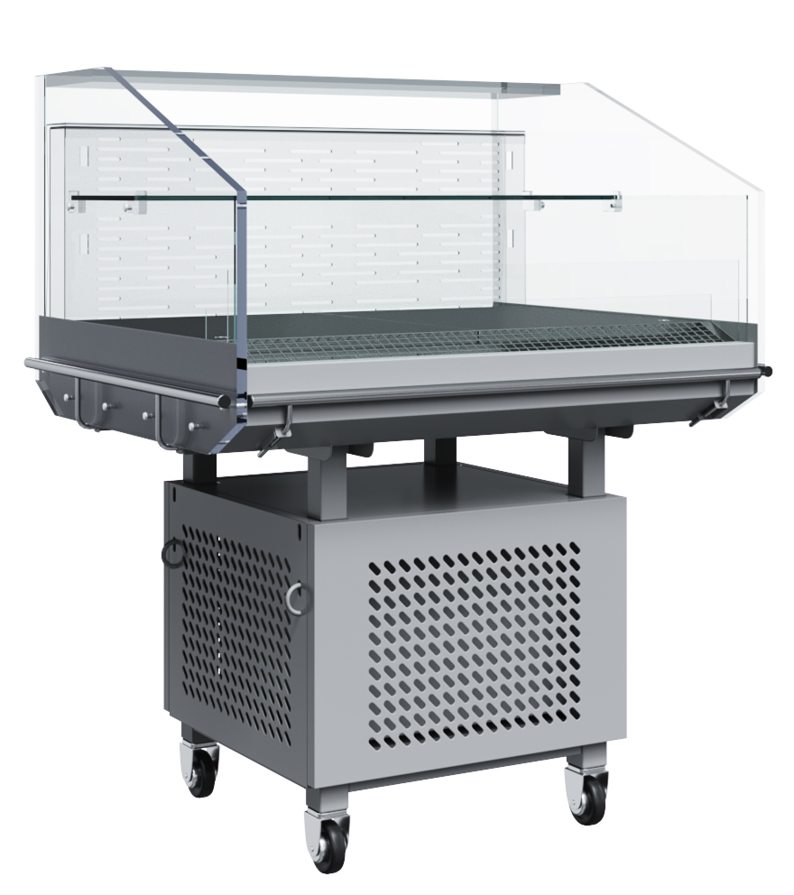 Большой обзор витрины ODA достигается за счет ударопрочных прозрачных боковин из ПММА и стекол, расположенных с фронтальной и задней стороны. Система воздуховодов позволяет равномерно распределить холод по всему внутреннему объему.