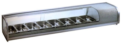 Холодильная витрина Starfood 132L используется для хранения, демонстрации и продажи рыбы, риса, морепродуктов, суши и других блюд японской кухни на преприятиях общественного питания и торговли.