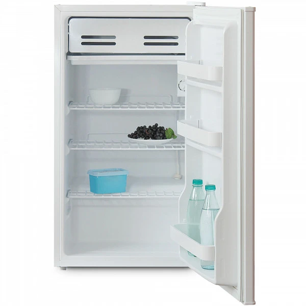 У Бирюса 90 миниатюрные размеры: высота 85 см, ширина 47.2 см и глубина 45 см, что делает холодильник идеальным для небольших пространств. Надежные металлические полки можно установить на четырех уровнях. Предусмотрены три полки на дверце для быстрого доступа к бутылкам и упаковкам. Обратите внимание, с июня 2024 года комплектация изменилась: одна из полок стала стеклянной, добавился ящик для овощей и фруктов. В продаже встречаются обе комплектации.