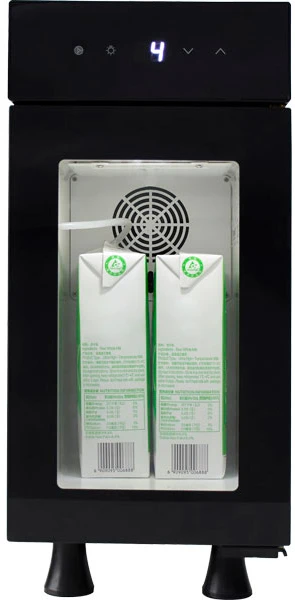 Оснащен системой непосредственного подключения к кофемашине, позволяющей промывать молочный контур без извлечения трубки забора молока из пакета (система самоочистки).