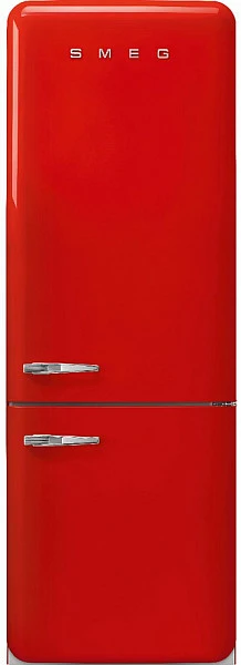 Холодильник двухкамерный Smeg FAB38RRD с морозильной камерой в корпусе красного цвета, выполненном в стиле 50-х годов XX века. Он подойдет интерьеру как в темных, так и в светлых тонах. Несмотря на внешний вид «ретро», прибор имеет все преимущества современной техники. Управление производится с помощью электронной панели с LED-дисплеем, расположенной на внутренней боковой стенке. Оба отделения No Frost, благодаря чему вам не нужно вручную их размораживать.