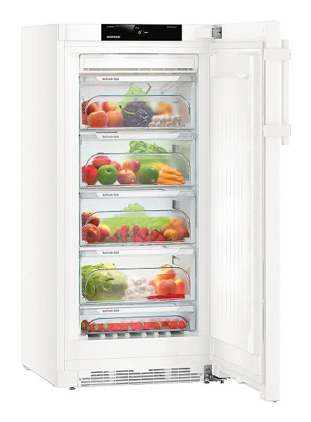 Модель высотой 125 см из серии BluPerformance идеально подойдет для дачи. Устройство отличают перенавешиваемая дверца, которая открывается на широкий угол до 115 градусов, транспортировочные ручки и ролики. Панель управления с 2,4-дюймовым сенсорным цветным TFT-дисплеем располагается за дверцей, на ней находятся индикатор температуры BioFresh-Safe, датчики открытой двери и сигнализация неисправностей. Автоматическое размораживание препятствует образованию льда на стенках камеры: для очистки ее достаточно просто протереть. Пять закрывающихся контейнеров BioFresh имеют прозрачный фронт для лучшего обзора. Система PowerCooling поддерживает стабильную температуру и гарантирует быстрое охлаждение по всей камере. Фильтр с активированным углем FreshAir встроен в вентилятор, он позволяет избавиться от посторонних запахов. О необходимости замены фильтра сообщает специальный индикатор. Модель может управляться дистанционно с мобильных устройств при дополнительной установке модуля SmartDeviceBox. Отпускной режим поможет сэкономить электроэнергию и предотвратить появление затхлого запаха, если дверца долгое время не открывается.