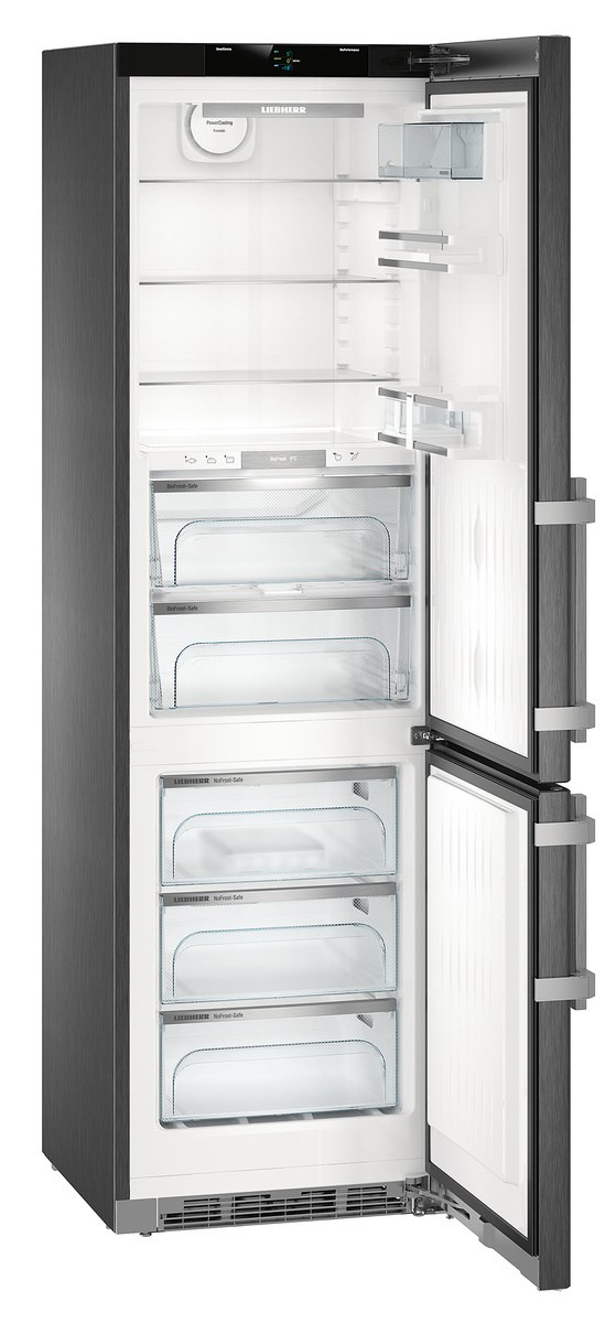 Холодильник Liebherr CBNbs 4875 с двумя камерами оснащен системой NoFrost, которая замораживает продукты при помощи циркуляции холодного воздуха и избавляет вас от ручной разморозки. Свежие продукты охлаждаются быстро и равномерно системой PowerCooling, в фильтр с активированном углем встроен вентилятор, эта конструкция очищает воздух и ликвидирует неприятные запахи.