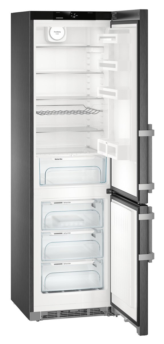 Холодильник Liebherr CNbs 4835 — двухкамерный холодильник объемом 361 л. Оснащен простым сенсорным управлением и удобным дисплеем, где отображаются индикаторы температур. Имеет отделение BioCool c регулировкой уровня влажности, где можно дольше хранить фрукты и овощи. Прибор можно установить вплотную к стене или в готовую нишу.