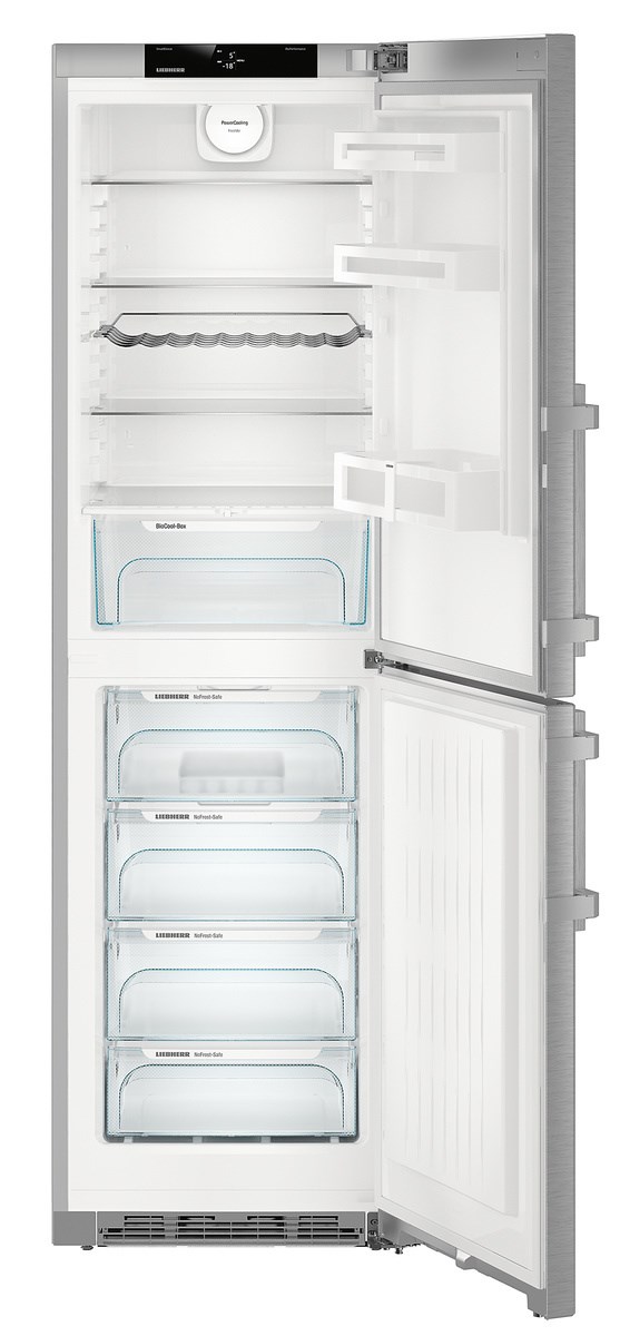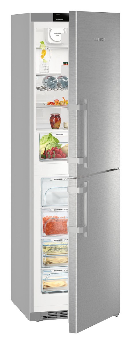 Холодильник Liebherr CNef 4735 — двухкамерный холодильник объемом 349 л. Имеет удобный сенсорный дисплей, на котором отображаются индикаторы температур. Оснащен отделением BioCool, которое позволяет регулировать уровень влажности в холодильном отделении для увеличения свежести овощей и фруктов. Прибор можно установить вплотную к стене или в готовую нишу.