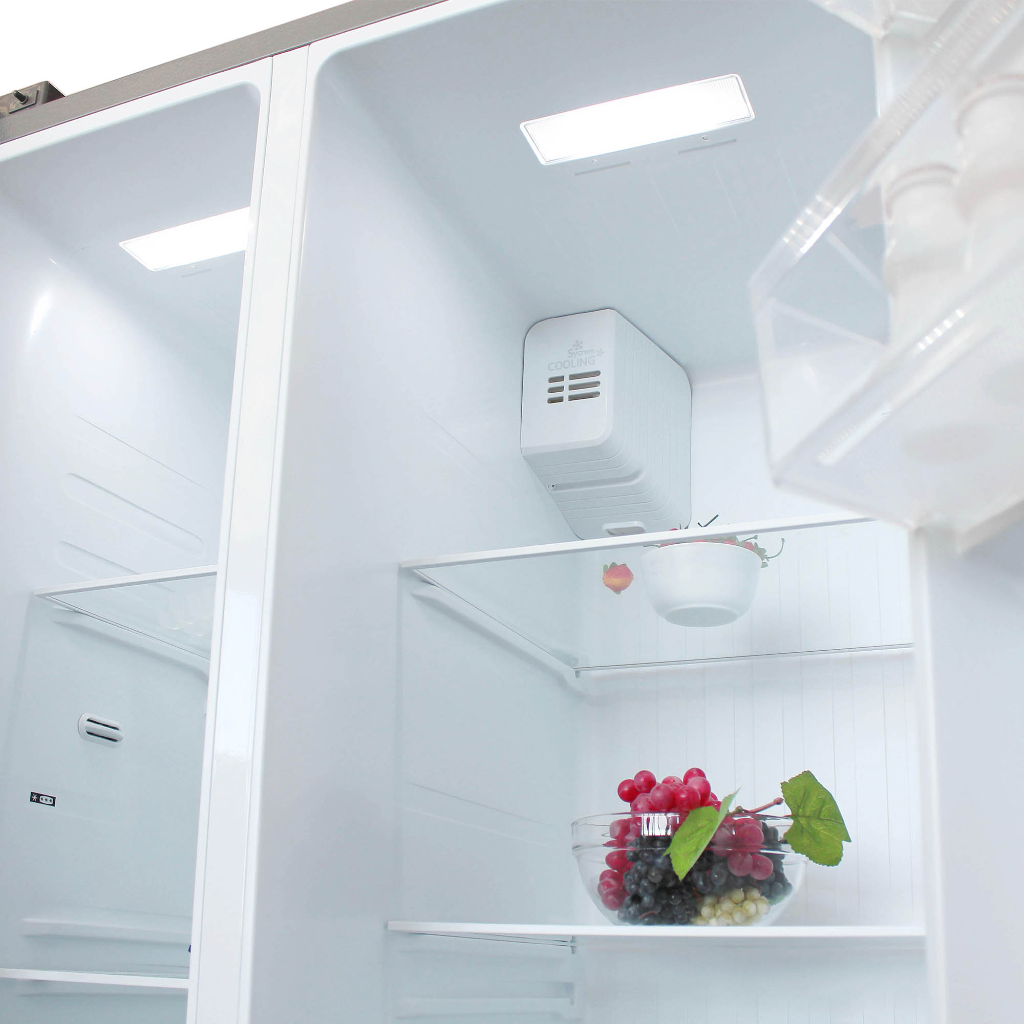 Холодильник Side-by-side Бирюса SBS 587 I предназначен для кратковременного хранения продуктов и охлаждения напитков в отделении для хранения свежих пищевых продуктов, замораживания и хранения замороженных продуктов в отделении для хранения замороженных пищевых продуктов.