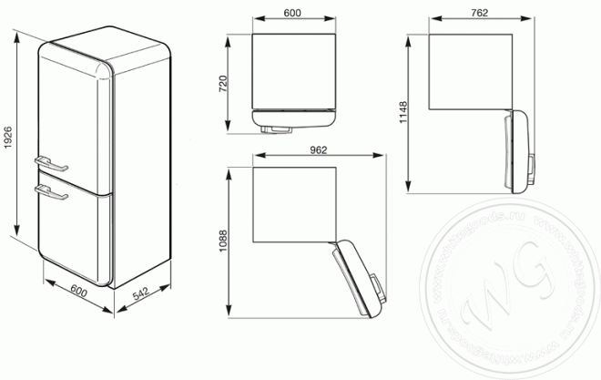 Для полного выдвижения внутренних ящиков необходимо открытие дверей холодильника минимум на 135 градусов (362 мм)