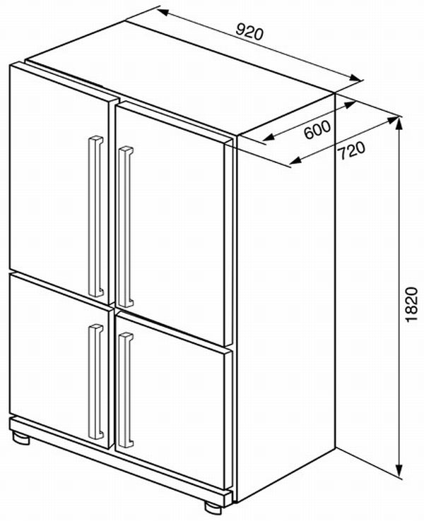 Расположение морозильной камеры Side by Side
