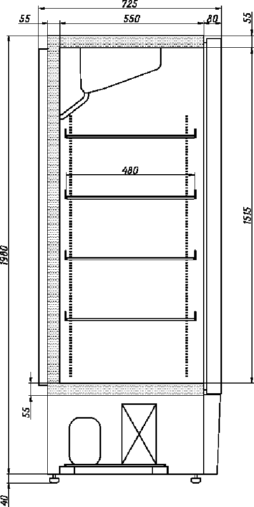 Холодильный шкаф Ариада R1400 V (пропан) линии Рапсодия предназначен для демонстрации, охлаждения и кратковременного хранения скоропортящихся продуктов и напитков на предприятиях торговли и общественного питания. Нижнее расположение агрегата является более выгодным с точки зрения мерчандайзинга - в отличие от верхнего, позволяет более выгодно выложить товар, а клиенту не наклоняться за товаром на нижнюю полку. Цельнозаливной корпус модели с толщиной стенки 55 мм облицован оцинкованной, грунтованной сталью с полимерным покрытием.