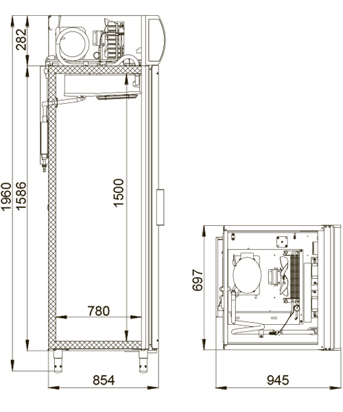 Модель имеет цельнозаливной пенополиуретановый корпус без щелей и стыков, гарантирующий надежную термоизоляцию охлаждаемого пространства, механическую прочность и долговечность шкафа.