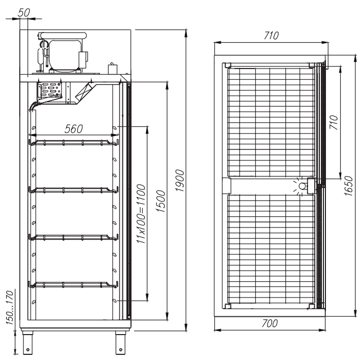 • Идеален для кухонь с ограниченными пространствами, вписывается в профессиональные технологические линии глубиной 700 и 800 мм