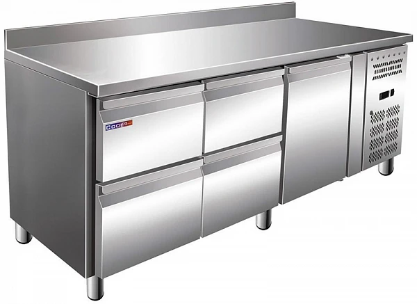 Стол с искусственным охлаждением внутреннего объема (встроенный холодильный шкаф) изготовлен из нержавеющей стали.