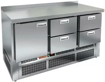 Холодильный стол Hicold SNE 122/TN с выдвижными ящиками, одной дверью и нижним расположением агрегата предназначен для обработки ингредиентов для приготовления блюд, а также кратковременного хранения скоропортящихся продуктов и напитков на предприятиях общественного питания и торговли.