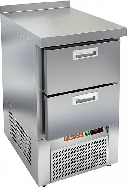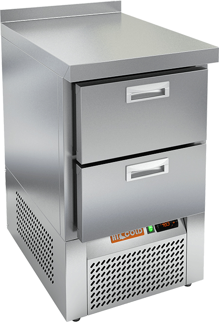 Холодильный стол Hicold SNE 2/TN с выдвижными ящиками и нижним расположением агрегата предназначен предназначен для обработки ингредиентов для приготовления блюд, а также кратковременного хранения скоропортящихся продуктов и напитков на предприятиях общественного питания и торговли.