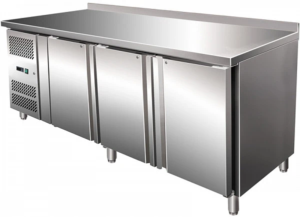 Холодильный стол Koreco TG19L3BA гастронормированный из нержавеющей стали AISI 304 толщиной 0,8 мм предназначен для раскатки теста и обработки ингредиентов для приготовления блюд, охлаждения и кратковременного хранения продуктов и напитков на предприятиях общественного питания и торговли.