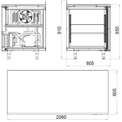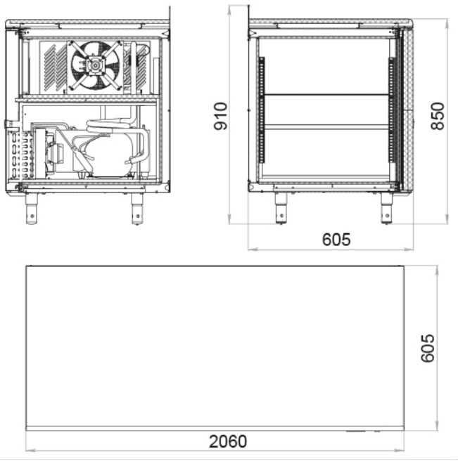 Холодильный стол полностью изготовлен из нержавеющей стали – снаружи и изнутри (за исключением задней стенки).