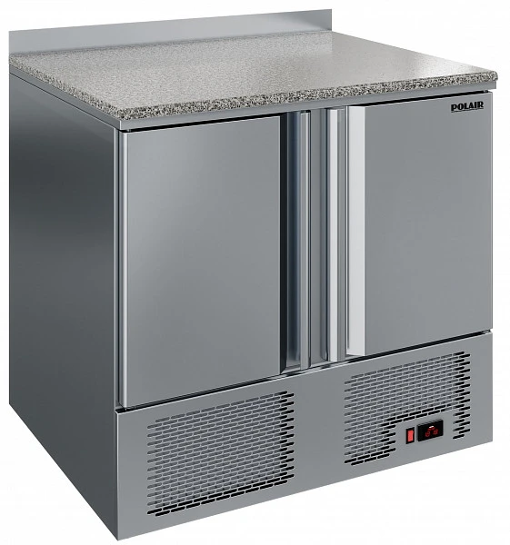 Холодильный стол Polair TMi2-G гранит - компактный стол, сочетающий в себе холодильный шкаф с существенным объемом хранения и рабочую поверхность из натурального гранита - идеальное решение для небольшого помещения кондитерской, пекарни, пиццерии и т.п. Гранитная столешница оптимальна для работы с различными видами теста, шоколадом, мороженым и т.п.