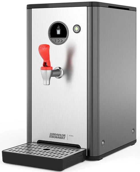 Кипятильник Bravilor Bonamat HWA 6 используется на предприятиях общественного питания и торговли для приготовления горячей воды, предназначенной для супа, каши, чая и других горячих напитков. Модель оснащена дозирующим краном без потока, быстрым нагревом воды и поддоном для капель. Корпус выполнен из нержавеющей стали.