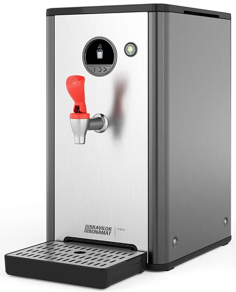 Кипятильник Bravilor Bonamat HWA 6D используется на предприятиях общественного питания и торговли для приготовления горячей воды, предназначенной для супа, каши, чая и других горячих напитков. Модель оснащена дозирующим краном без потока, быстрым нагревом воды и поддоном для капель. Корпус выполнен из нержавеющей стали.