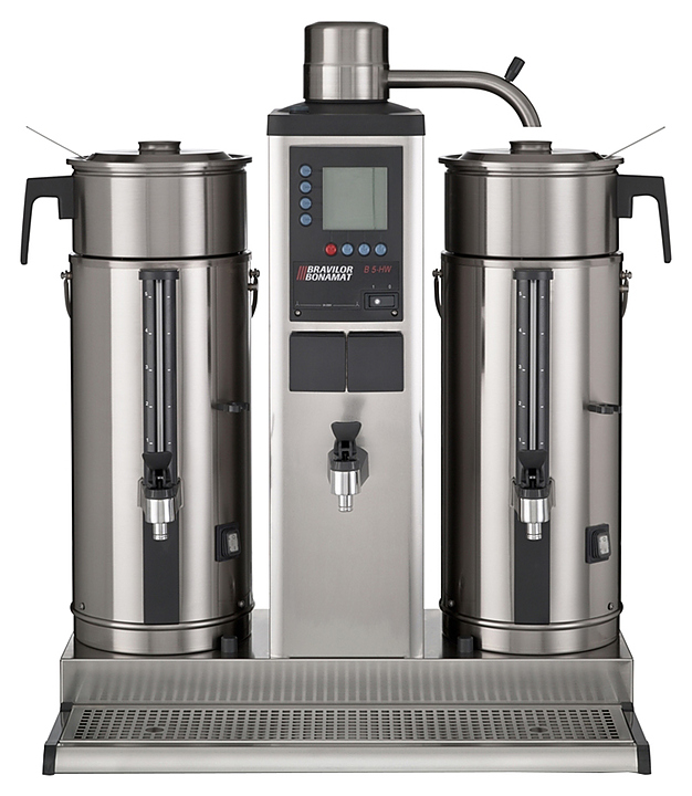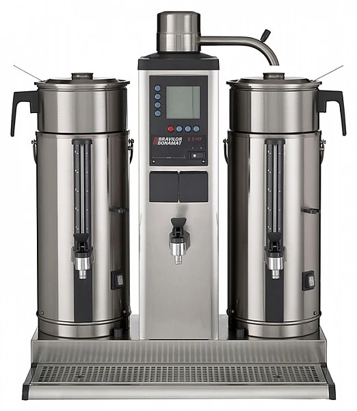 Кофемашина Bravilor Bonamat В20 HW W используется на предприятиях общественного питания и торговли для приготовления фильтрованного кофе и горячей воды, предназначенной для супа, каши, чая и других горячих напитков. Модель оснащена цифровым дисплеем, системой кофеварения, 2 емкостями для кофе с подогревом, 2 заварными чашами, отдельным краном горячей воды, индикаторами заполнения, готовности кофе и удаления накипи и поддоном для капель. Корпус выполнен из нержавеющей стали.