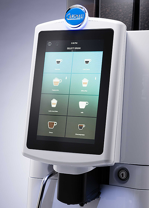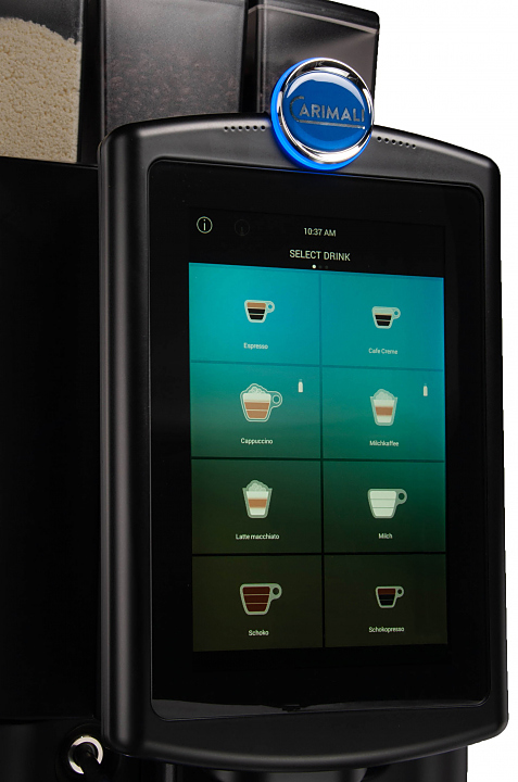 Кофемашина CARIMALI Armonia Ultra AU-01-01-02 оснащена новым 10-дюймовым сенсорным экраном, который можно настроить для отображения любого типа напитков и показа видео.