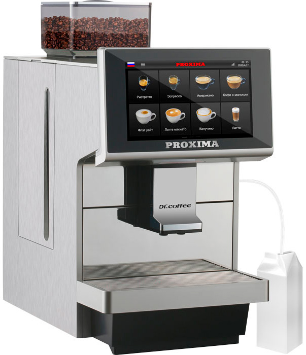 Кофемашина Dr.coffee Proxima M12 Plus – суперавтоматическая профессиональная кофемашина для кафе и кофейни, бара и ресторана, среднего и крупного офиса, в которой реализованы инновационные технологии для быстрого и легкого приготовления очень вкусных и ароматных классических кофейных и кофейно-молочных напитков всех видов, чая и бесконечное количество индивидуальных кофейных напитков!