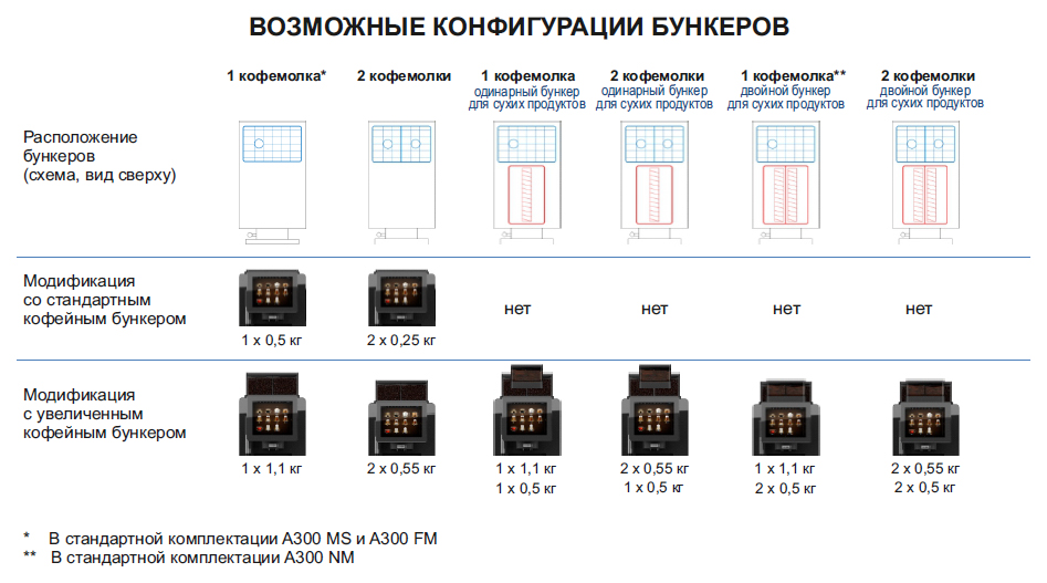 Возможность установки до 2 кофейных бункеров с отдельными кофемолками (приобретается отдельно)