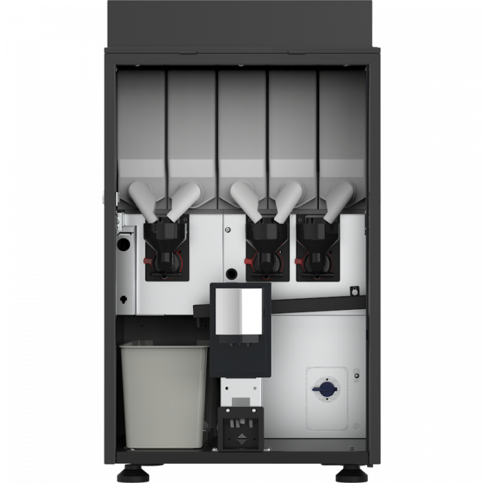 Автономность и вместительность - 5 бункеров по 2,8 кг каждый для сыпучих ингредиентов (сухие сливки, шоколад, раф-микс, составы для милкшейков) обеспечивают более 200 порций без дозаправки.