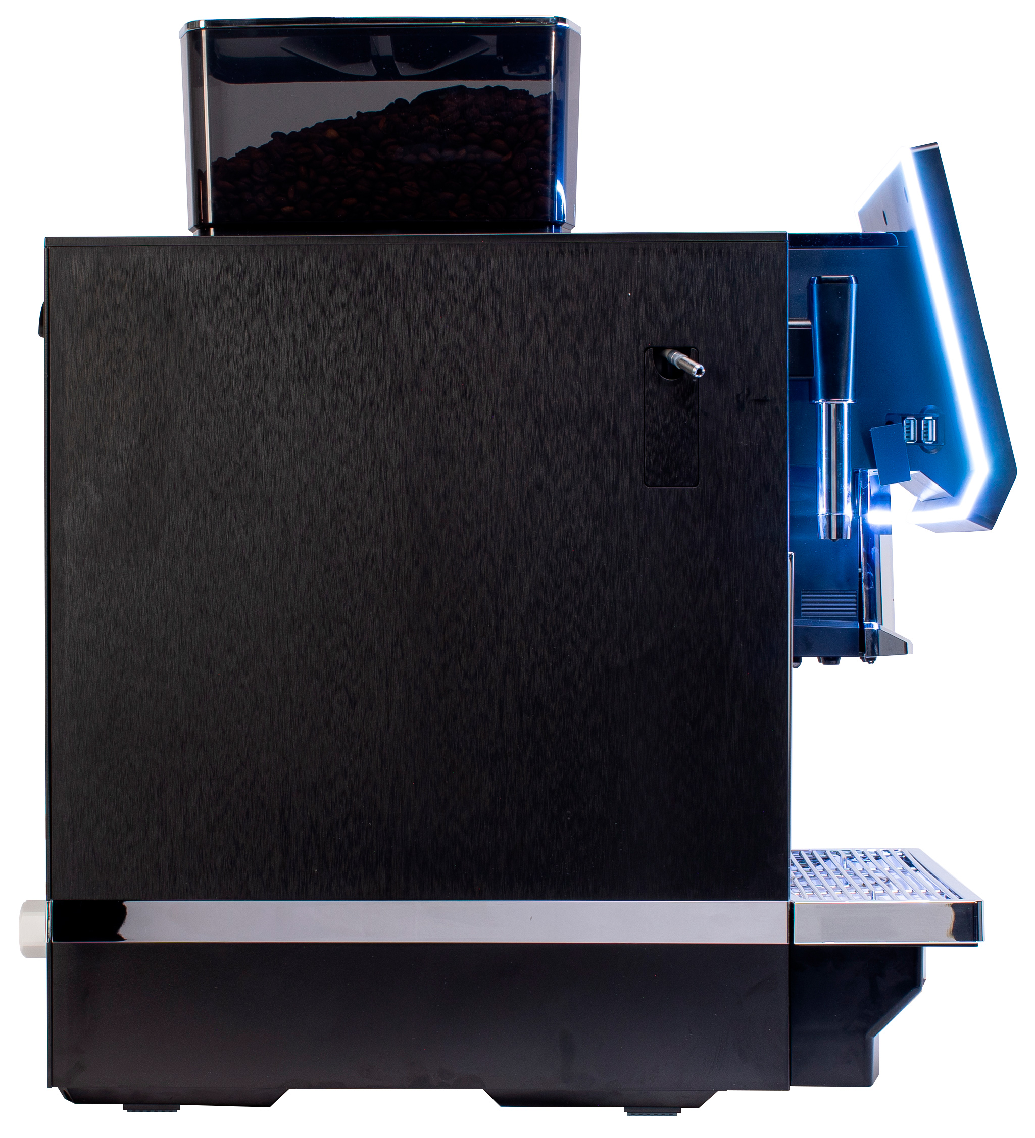 Благодаря двум независимым проточным бойлерам и двум помпам возможно одновременно выдавать кофе и молоко при приготовлении кофейных напитков с молоком. Возможно одновременное приготовление двух одинаковых напитков. Высота раздаточной группы регулируется от 105 до 180 мм.