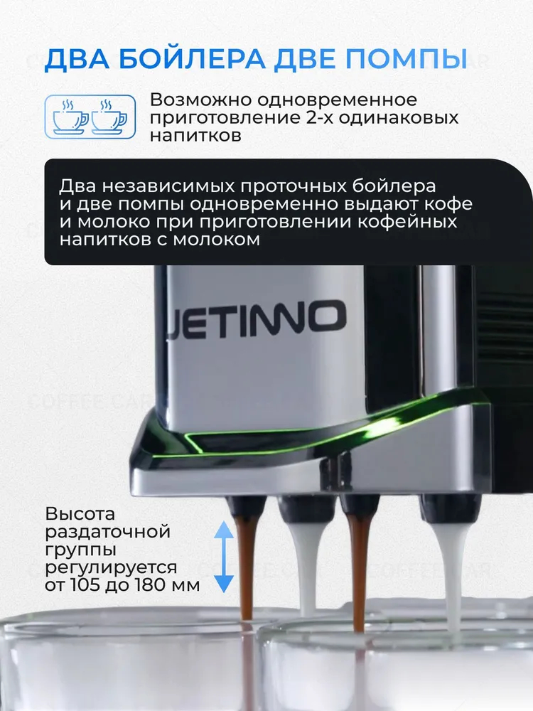 Кофемашина Jetinno JL36A-BT-MW - это суперавтоматическая кофемашина для кафе, кофейни, бара, ресторана, среднего и крупного офиса, в которой реализованы инновационные технологии для быстрого и легкого приготовления очень вкусных и ароматных классических кофейных и кофейно-молочных напитков всех видов, чая и индивидуальных кофейных напитков! Готовит эспрессо и капучино, обычный латте и латте макиато, ристретто и лунго, а также флэт уайт.