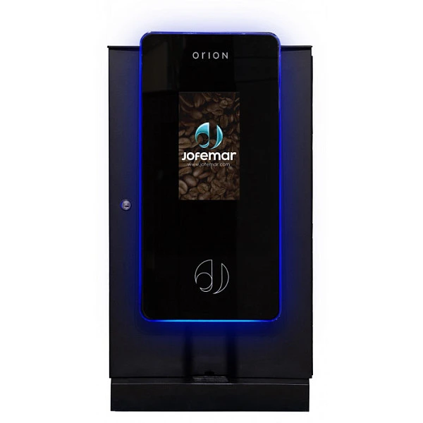 Кофемашина Jofemar ORION TOUCH идеально подойдет для установки в кофекорнерах, офисах, бизнес-пространствах, на автозаправках и в зонах самообслуживания.Благодаря элегантному чёрному дизайну Orion Touch впишется в любой интерьер, интуитивно понятное управление на большом экране поможет вам настроить своё идеальное меню. Кроме того, регулируемая RGB-подсветка по периметру добавляет особый штрих, делая Orion Touch идеальным выбором для любого бизнеса.