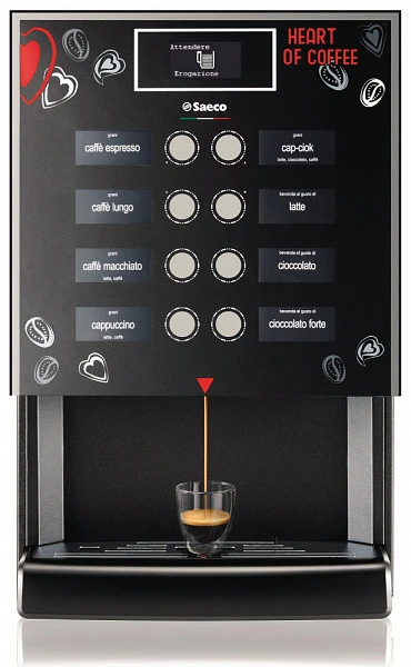 Кофемашина имеет 8 кнопок для выбора различных напитков и способна справиться с потреблением в 30-50 порций в час.
