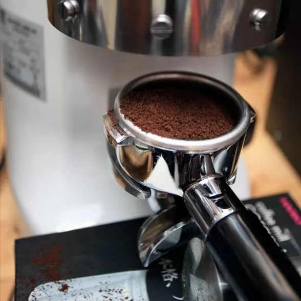 Модель оснащена электромеханической системой управления и непрерывной микрометрической регулировкой помола. Корпус выполнен из окрашенного металла. Плоский нож изготовлен из нержавеющей стали, диаметр жерновов - 83 мм. Скорость вращения ножа - 1400-1600 оборотов в минуту. Контейнер для зерен вмещает до 1,8 кг, контейнер для молотого кофе - 360 гр.