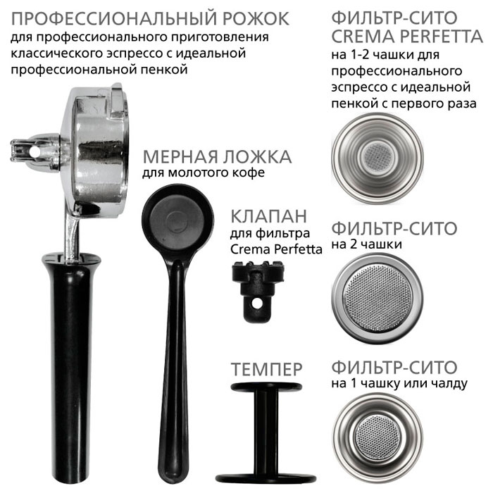 Професииональный герметичный держатель фильтра гарантирует вкусную насыщенную пену.