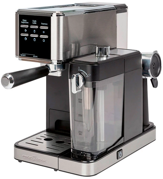 Кофеварка ProfiCook PC-ES-KA 1266 с функцией вспенивания молока для приготовления кофейных напитков: эспрессо / ристретто, латте, капучино, американо.
