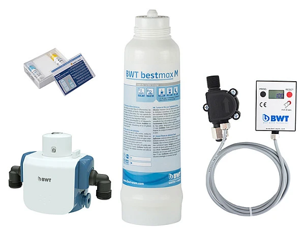 Комплект фильтр-системы BWT bestmax M используется на предприятиях общественного питания и торговли для фильтрации воды, используемой в бойлерах, кофемашинах, пароконвектоматах, посудомоечных машинах, льдогенераторах и другом борудовании HoReCa, а также защиты его от известковых отложений. Многоступенчатая очистка обеспечивает необходимое качество воды для приготовления блюд и напитков и удаление всех примесей.