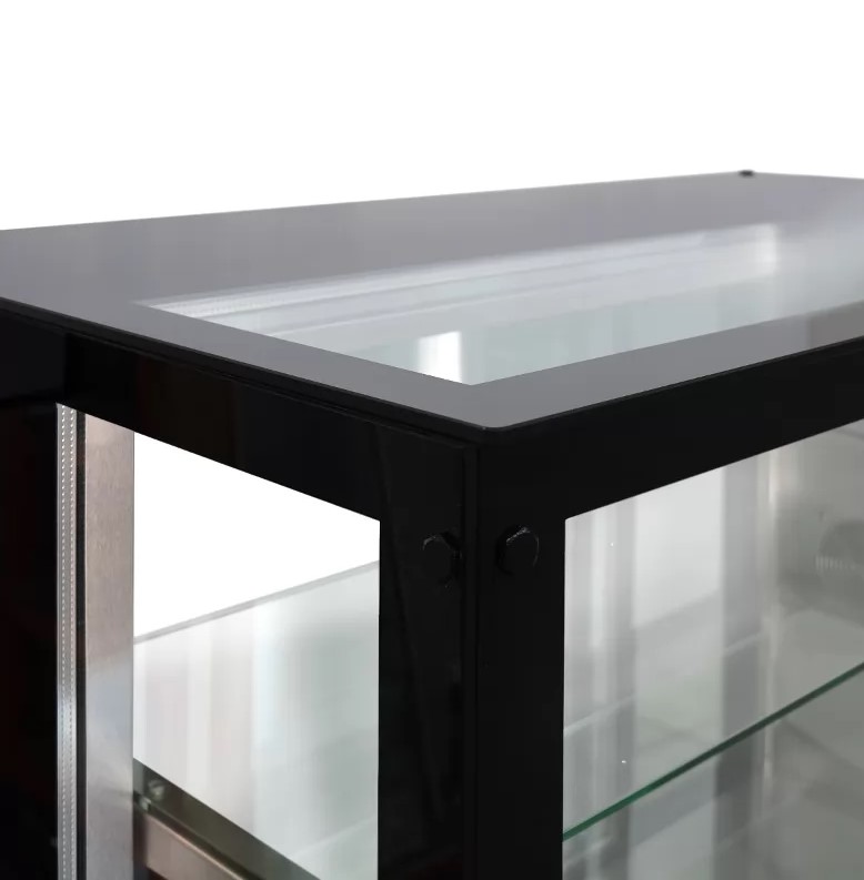 Выкладка продуктов для демонстрации осуществляется на дно и промежуточные полки витрины. Оформление стеклопакетом (толщина 16 мм) с четырех сторон позволяет удобно рассматривать гостям предложенный товар.