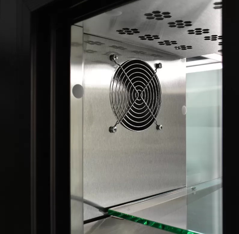 Отличительная особенность этой витрины — наличие воздуховодов по боковым стенкам витрины для лучшей циркуляции воздуха.