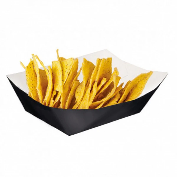 Контейнер картонный для картофеля фри Garcia de Pou Black, 240 г, 8,5*5*4 см, 200 шт/уп предназначен для хранения, транспортировки и употребления различного фастфуда, производимого в кафе, ресторанах быстрого питания и дома.