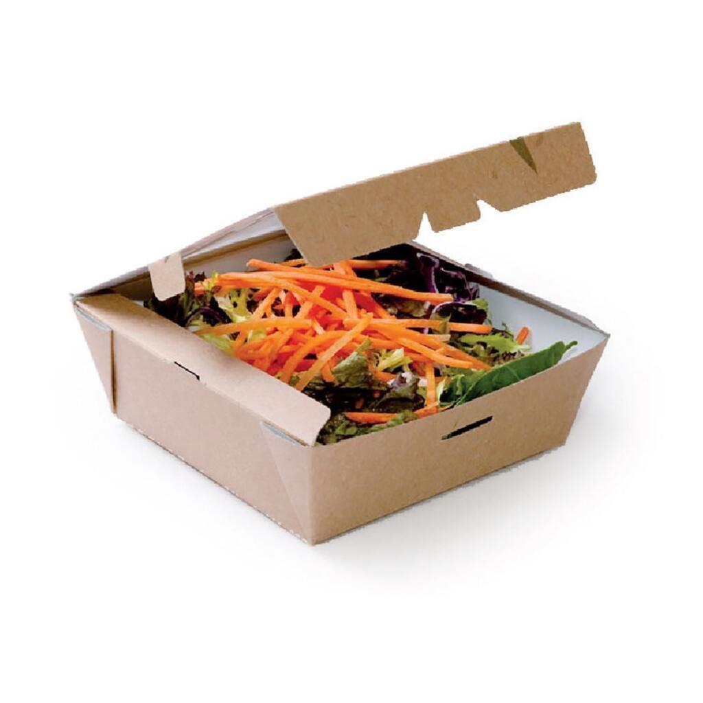 Контейнер картонный для салата с окном Garcia de Pou 15/12,5*15/12,5*5 см, 50 шт/уп предназначен для хранения, транспортировки и употребления различного фастфуда, производимого в кафе, ресторанах быстрого питания и дома.